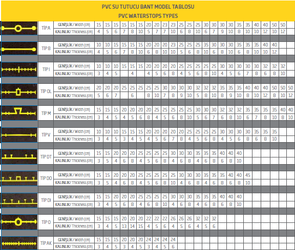 Betonarme yapılarda bazı noktalarda derz bırakılması zorunludur. Yapılarda çimento prizini tamamladığında hacimde oluşacak azalma nedeniyle oluşabilecek deformasyonun yapıya zarar vermesini önlemek amacıyla genleşme derzleri bırakılması gereklidir. Beton dökümünün kısım kısım yapıldığı ve basınç gerilmelerine dik olarak düzenlenen derzler inşaat derzleridir. Zemin hareketleri sebebi ile yapıda düzenlenmiş derzler ise daralma derzi olarak adlandırılır. Bu sebeplerden dolayı yapıda oluşabilecek deformasyonları önlemek ve bu bölgelerde su sızdırmazlığı sağlamak amacıyla PVC SU TUTUCU BANTLAR kullanılır.